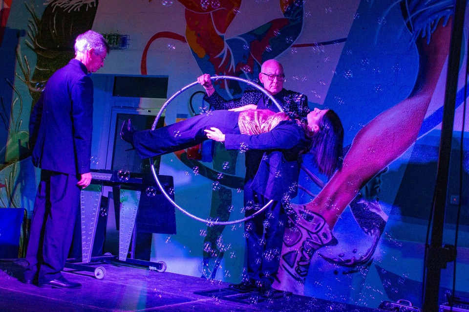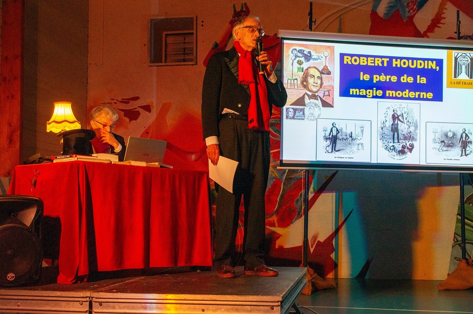 Pendant cette parlotte où Stéphane nous racontait la vie de Robert-Houdin, trois magiciens locaux proposaient des tours remarquables, dont la fameuse lévitation, tour présenté pour la 1ère fois en 1847 par le maître sous le nom de suspension étheréenne.
